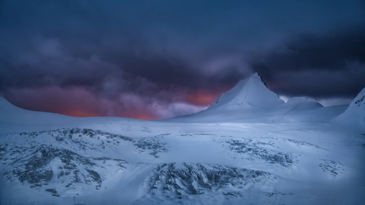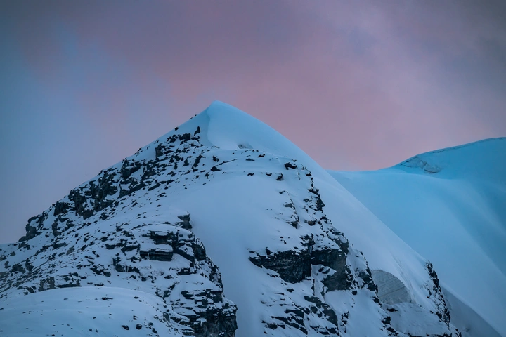 一座无名雪山和它身后天空中淡到广角无法察觉的粉色