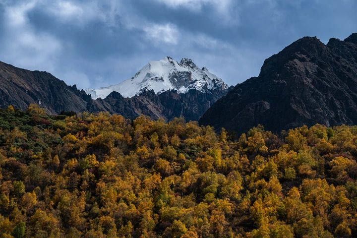 150mm焦段拍摄的秋色下的虾嘎拉母雪山