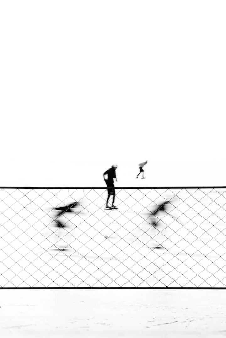 冬日在什刹海拍摄的一张照片。茫茫的溜冰场上舞动着各种身影,老手,新手,大人,孩子,一动一静之间构成了一幅摄影作品。