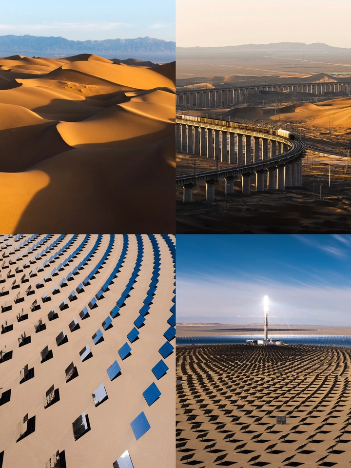 当《沙丘》里“突破时空的强大心智”照进现实,沙漠不再只有荒芜——中国光电熔岩发电塔立在戈壁,把烈日熔成清洁能源的光。 从古道商队到科技巨塔,从驼铃悠扬到电流奔涌,这是属于我们的“破界”,一步一步,走向更亮的未来。