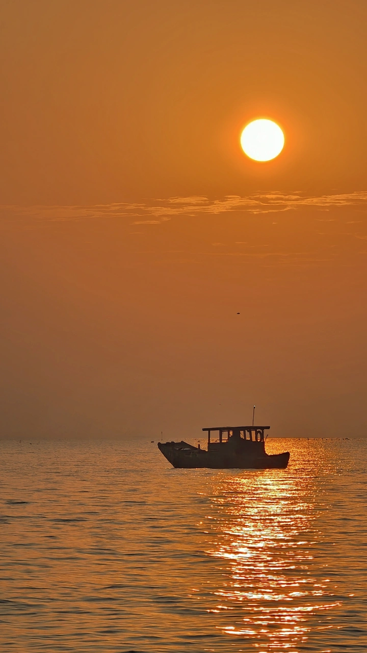 旭日东升,海面熔金。