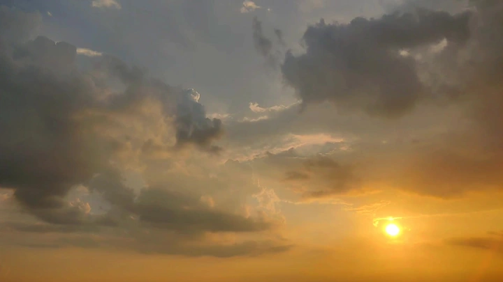 近期的雨水将空气清洗干净,天空露出本色,日落前一小时,云层随着光线的变化呈现出彩色