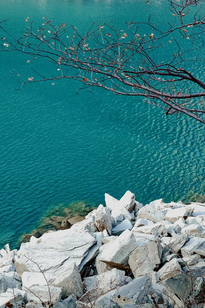 这里是目前世界上保存最完整的地震破坏遗址之一,也是国内著名的红叶观赏圣地,冬季的叠溪.松坪沟是一年中的旅游淡季,植被陷入沉睡,覆盖着冰层的湖水也失去了生机,一路上,随处可见大大小小的石块,小的像被刻意粉碎,整齐排布,大的像锋利的匕首,直刺云霄,树木冲破岩石、屹立山间,等待着来年春天的到来,在这儿,我看到了生命蕴藏之美。