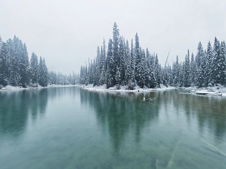一场大雪中手机拍摄的落基山国家公园。翡翠湖和路易斯湖。。很空灵唯美。