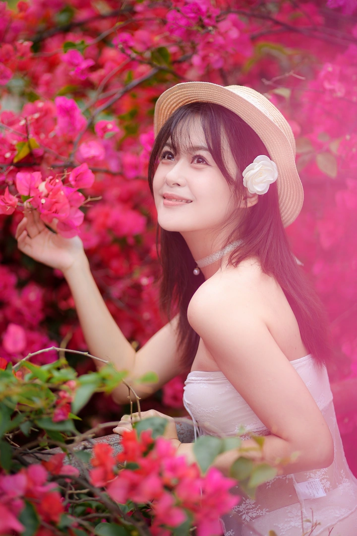 把自己藏进三角梅的粉色梦境里, 与花完成了一场温柔的邂逅, 在热烈的色彩里,做一场松弛的白日梦。