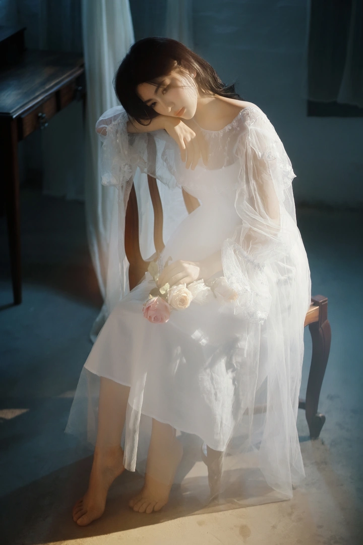 光穿过薄纱, 落在发梢与指尖, 把时光酿成一首温柔的诗。
