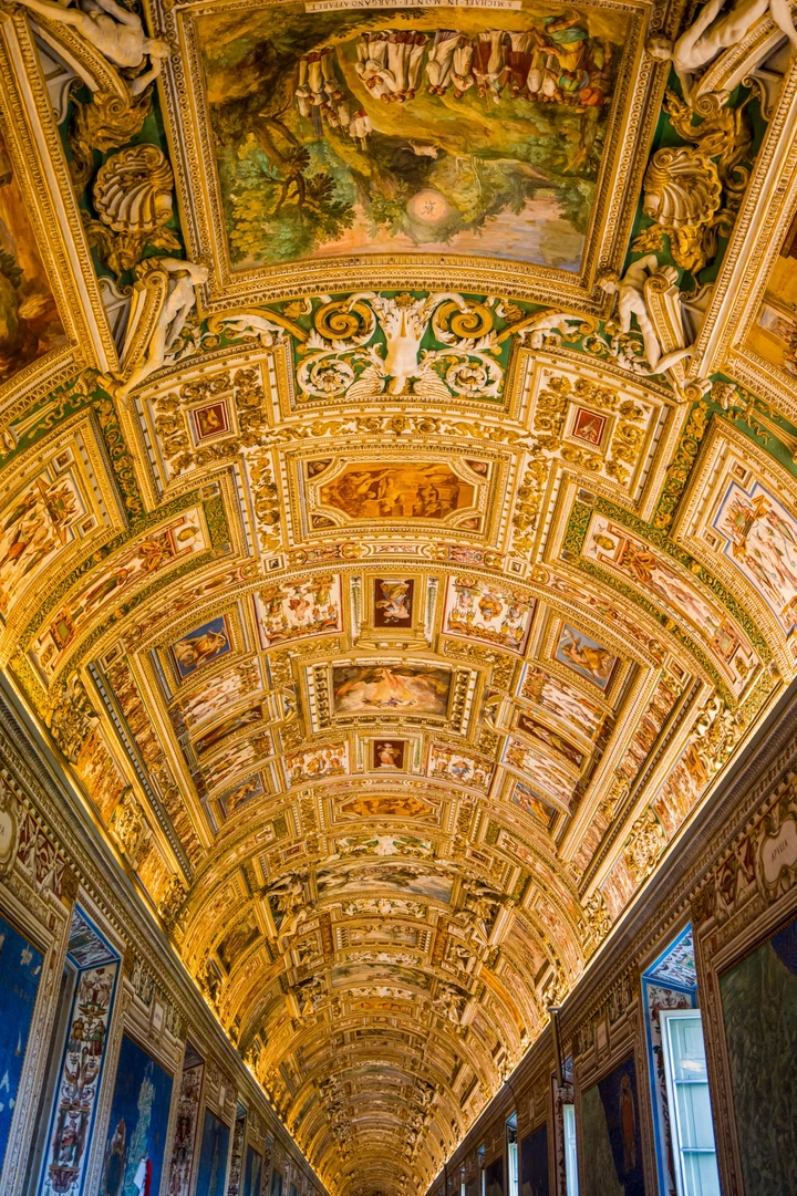 当阳光穿过梵蒂冈博物馆的穹顶天窗,在大理石长廊上投下规整的几何光斑,古典雕像的轮廓在明暗里苏醒——这不仅是美学的韵律,更是神权时代对秩序与永恒的追求。螺旋楼梯的青铜雕花缠绕着时光,层层向下延伸成通往艺术深处的漩涡,每一道纹路都藏着教廷对视觉权威的塑造。 圣彼得大教堂的穹顶在晴空下舒展,将宗教的庄严托向天际,这座由米开朗基罗等大师接力完成的建筑,本身就是一部权力与信仰交织的史诗。壁龛里的半身像在深青背景前沉默,侧颜里藏着古希腊罗马的文明余韵,也见证着教廷对古典艺术的吸纳与重构。天顶壁画与圣像交叠,金箔与色彩在拱顶间铺展成通往天国的阶梯,让宗教叙事与艺术表达在方寸之间共生。 这里的每一寸光影都在诉说:梵蒂冈用石头与色彩,将神权的秩序、文明的脉络,凝固成跨越时空的美学信仰。