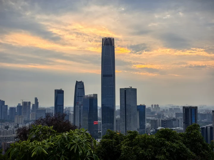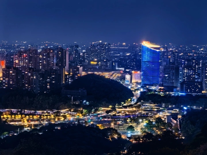 东.莞国贸民盈购物中心,筒称国贸,它是目前东莞的地标建筑,|最高85层,423米.。(华为手机拍摄)