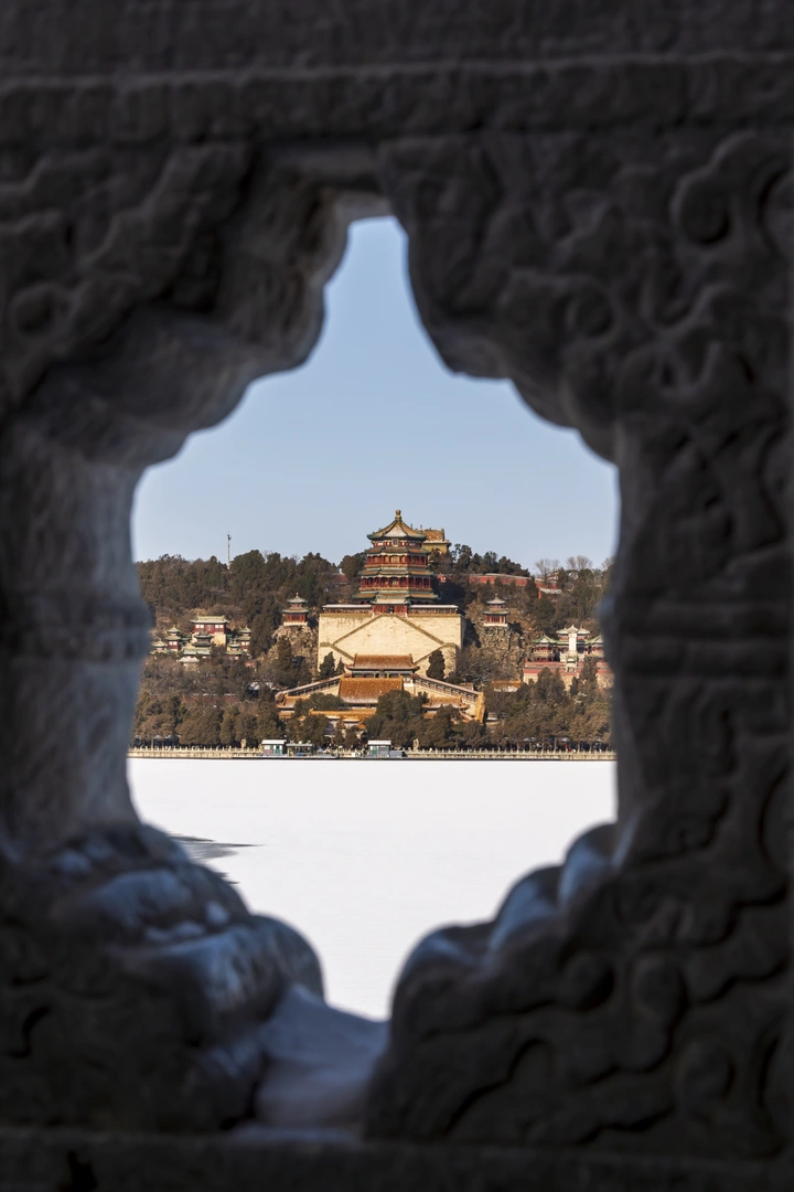 残雪覆在桥栏,夕阳漫进桥洞,十七孔桥的这一刻,是北京冬日独有的仪式感。 也不由让人感叹,老祖宗这迷人的智慧。