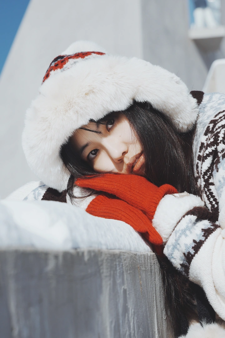 天地被裹进一片纯白 红手套是雪色里的一抹惊鸿 时光在此刻缓缓流淌