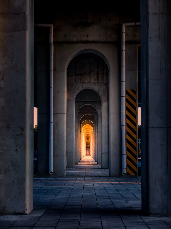 长长的拱廊像人生的隐喻,越是往前走,越是靠近光。今天的日落是温柔的指引,告诉我们:所有的奔赴,终会抵达明亮的终点。