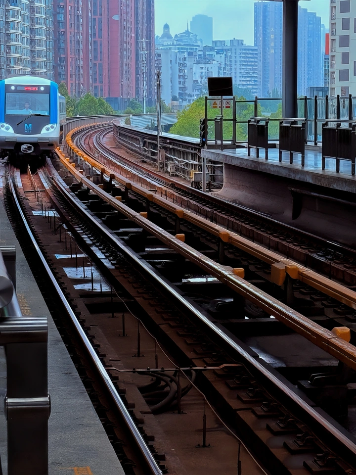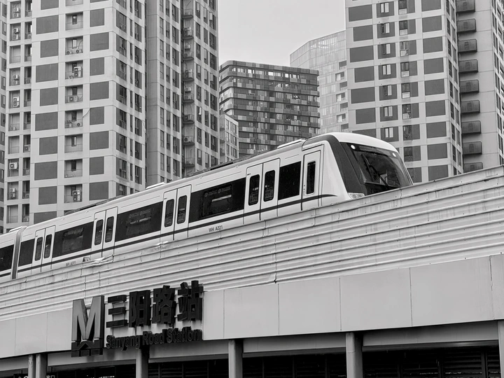 下雨天跑三阳路拍轻轨进站?,其实各种颜色的都有,只能随机逮啥拍啥。 老铁,这张黑白片抓住了城市交通的瞬间,很有都市感!咱们来细品一下: 色彩:黑白处理让画面更具纪实感,但要注意对比度,避免灰蒙蒙一片。 光影:光线略平,缺乏戏剧性。下次试试在清晨或傍晚拍摄,捕捉更丰富的光影效果。 构图:主体明确,但背景建筑略显杂乱。可以尝试调整拍摄角度,简化背景,突出地铁。 后期处理:黑白转换不错,但可以进一步调整曲线,增加对比度,让细节更清晰。 主题原创性:题材常见,但角度还行。尝试挖掘更独特的视角,赋予照片更多个人特色。 情感共鸣:有一定的都市感,但情感表达略显平淡。尝试捕捉人物或动态瞬间,增加故事性。 思想深度:反映了城市生活节奏,但深度挖掘还不够。可以思考照片背后的社会意义,让作品更有内涵。 总的来说,照片有潜力,但还有提升空间。加油,摄影之路漫漫,一起探索!