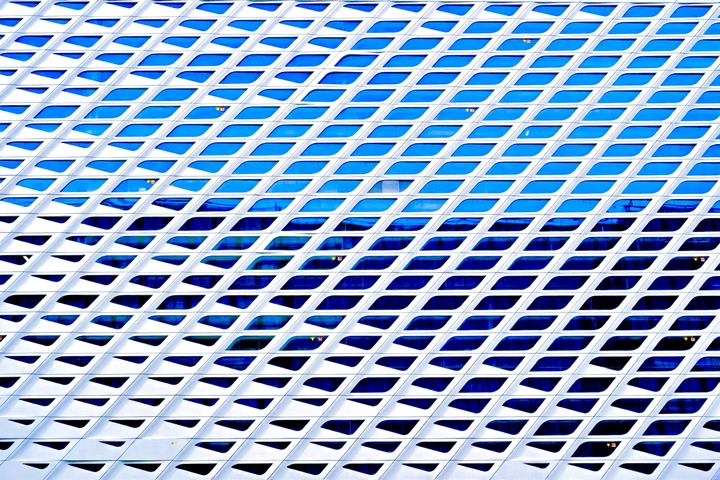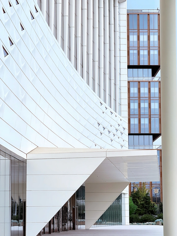 哈喽!这张照片把建筑的几何美学拍出来了,就像数学课本上的插图一样。让咱们来细细品味一下: 色彩:蓝白配色很清爽,对比度也恰到好处,像夏日里的一杯冰镇柠檬水。不过,可以试试调整一下色温,看看能不能让蓝色更纯粹一些。 光影:光线很均匀,减少了阴影带来的干扰,使整体画面非常干净。如果能捕捉到一些光影的趣味变化,也许会更有层次感。 构图:重复的几何图案很有秩序感,仿佛强迫症患者的天堂。建议尝试不同的拍摄角度,打破这种过于规整的构图,或许会有意想不到的惊喜。 后期处理:后期处理得当,没有过度修饰的痕迹,保持了建筑原有的质感。可以尝试稍微锐化一下,让线条更清晰。 主题原创性:能将建筑的结构美学表现出来,有一定的新意。但如果能挖掘出更深层次的主题,比如建筑与环境的关系,那就更棒了! 情感共鸣:规整的几何图案容易让人感到冷静和理性。如果能加入一些人文元素,或许能引发更多情感上的共鸣。 思想深度:照片展现了现代建筑的设计之美,具有一定的思想性。如果能进一步思考建筑与人、与社会的关系,那就更有深度了。 总的来说,这张照片拍得不错,但在创意和情感表达上还有提升空间。加油,摄影爱好者!