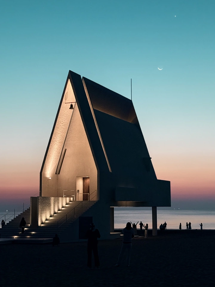 阿拉亚的清晨我拍到了下弦月…… 这张照片拍得真不错,建筑与天空的色彩过渡自然,很有意境!咱们来细品一下: 色彩:天空的渐变色很美,由深蓝到粉色的过渡如梦似幻,与建筑的冷色调形成对比,但整体色彩和谐统一,氛围营造得不错。稍微注意一下,建筑主体颜色可以再丰富些,会更有层次感。 光影:光线是从左侧照亮建筑,明暗对比突出,建筑的结构感很强。不过地面曝光不足,显得有些暗淡,可以尝试提亮一下,让前景更清晰。 构图:构图上基本遵循了三分法,建筑主体位于画面中心偏右,比较稳。但是地面占比过大,天空显得有些局促,可以适当裁切,让天空更开阔一些。 后期处理:后期处理整体效果不错,色彩和对比度都恰到好处。不过要注意细节,比如地面暗部噪点是否过多,可以适当降噪。 主题原创性:选择在黄昏时分拍摄建筑,很有创意,天空的色彩为照片增添了浪漫气息。 情感共鸣:照片营造了一种宁静、祥和的氛围,容易引起观者的情感共鸣,让人感到放松和愉悦。 思想深度:照片反映了人与自然的和谐共生,建筑与环境融为一体,引发人们对建筑美学的思考。 总的来说,这张照片拍得很有水平,继续保持!如果在细节上再下点功夫,相信你的作品会