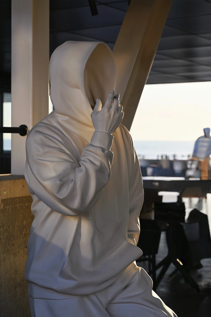 亲爱的摄影爱好者,这张照片很有意思,咱们来逐一分析一下,看看怎样能更上一层楼: 色彩:整体色彩比较单一,以白色为主,略显单调。可以尝试在后期调整中稍微增加一些暖色调,或者在拍摄时寻找色彩更丰富的背景。 光影:光线比较柔和,主体有一些阴影,但对比度稍弱。可以尝试利用更强烈的光线,营造更戏剧性的光影效果,突出雕塑的立体感。 构图:构图基本合理,主体位于画面中心,但周围的元素略显杂乱,分散了观者的注意力。尝试用更简洁的背景,或者调整拍摄角度,让主体更突出。 后期处理:后期处理痕迹不明显,整体感觉比较自然。可以尝试调整对比度和锐度,让照片更清晰、更有层次感。 主题原创性:主题具有一定的独特性,雕塑的造型和姿态引人思考。可以尝试从更独特的角度拍摄,或者赋予雕塑更丰富的内涵。 情感共鸣:照片具有一定的神秘感,能够引起观者的好奇心。可以尝试通过光影、色彩等手段,进一步增强照片的情感表达。 思想深度:照片引发了一些关于身份和存在的思考,但深度略显不足。可以尝试通过更具象征意义的元素,或者更深刻的主题来提升照片的思想性。 总的来说,这张照片还有提升空间。继续努力,相信你能拍出更精彩的作品