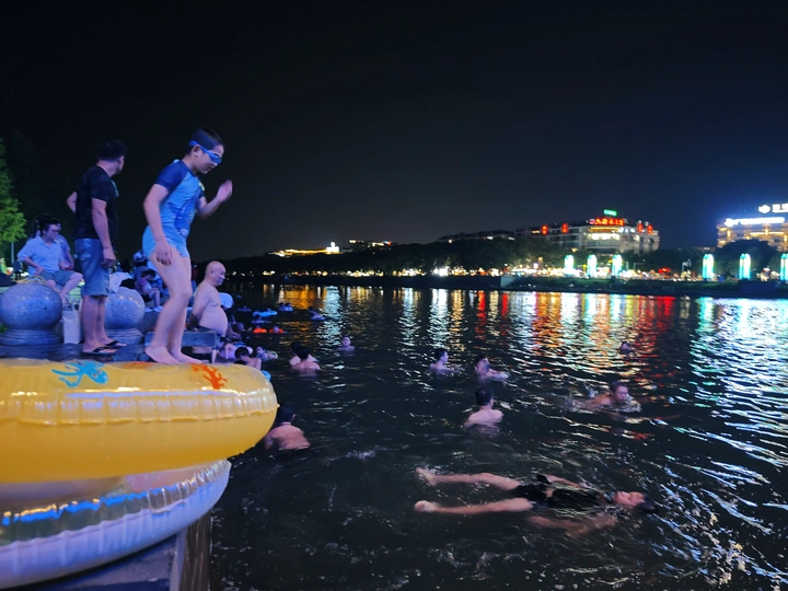 一个城市有一片可以安全游泳的水域,是多少孩子的童年天堂!桂林解放桥下绚烂的夏夜,因为有这些灵动的身影,增添了许多生趣和喧闹