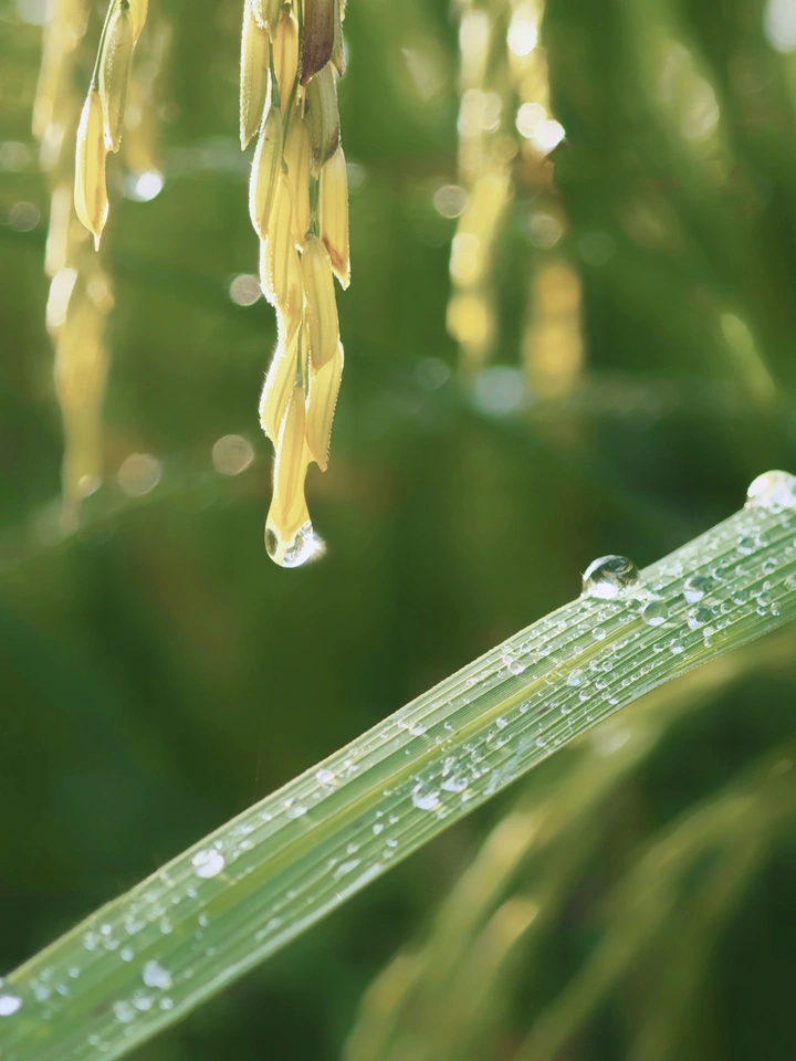 中秋来临,稻田里还是青黄相接,昨夜下了雨,清晨的稻穗喝饱了雨露和阳光,眼看着一片片丰收了