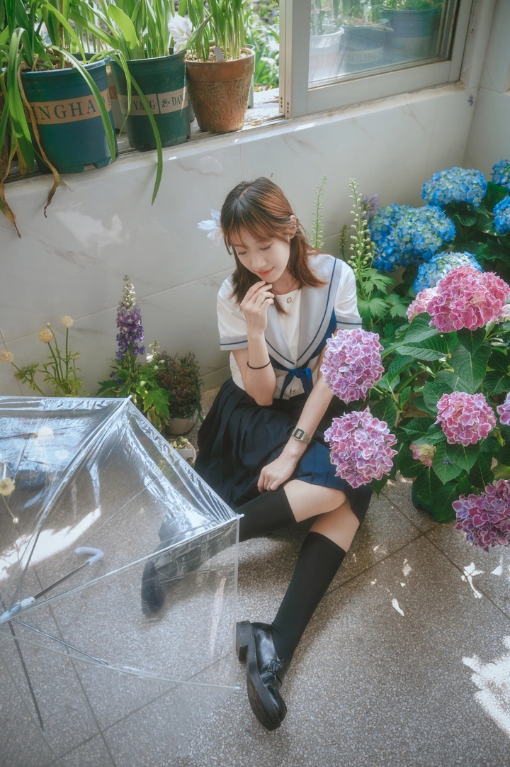 绣球花的花语是什么,我不太记得了,但我知道去年夏天也拍过绣球花的写真,那么它在春天开花的话,会不会就是说明夏天其实已经到了呢? 出镜模特:梓晴 设备:Z6,腾龙2875f2.8g2