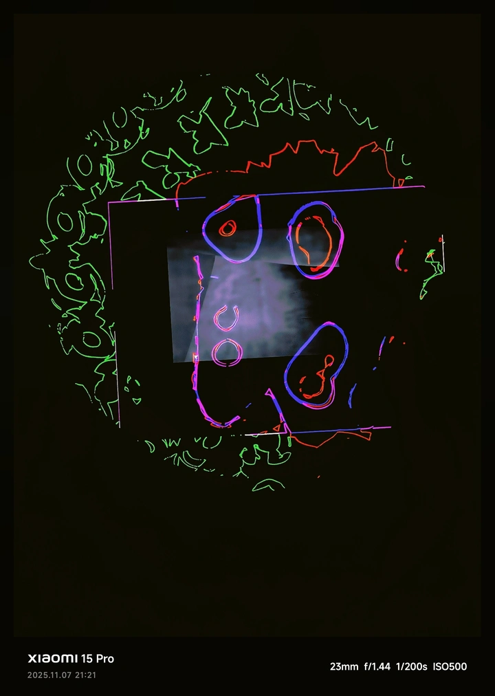 (本幅作为个人抽象作品集《体内的小千世界》系列第五张。后续会不断更新。) 我于现实安插了一只自由意志的眼 它此刻正 飞逐蝇营狗的觥筹交错 直到看到了这些 我又回到了初发 回到了回到 才知道我是我本身 那个向外的、不断膨胀的(因物质、身份等外的「相」的改变) 名、慕、利 或许都是人间漂客(过客) 牢骚几句 。 这是来自自由意志的觉醒。到现在,我才有了几丝“我”的体知。才有点理解到《遥远的救世主》中丁元英说的“当你知道你是你的时候,你不是你;当你知道你不是你的时候,你是你”。朦朦胧胧,潦草记录。