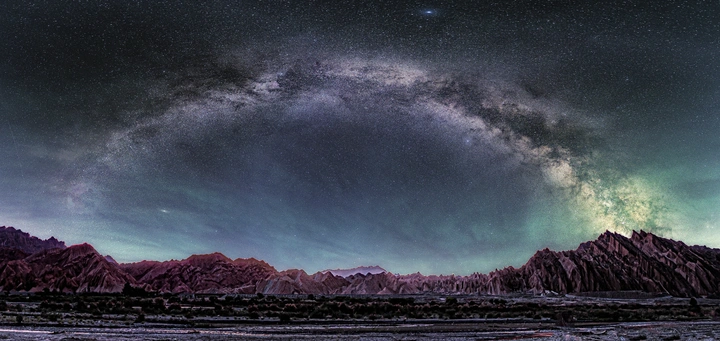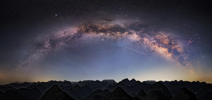 在靘雾山拍摄的天蝎座星空调色盘与银心,星空部分采用80s30张叠加