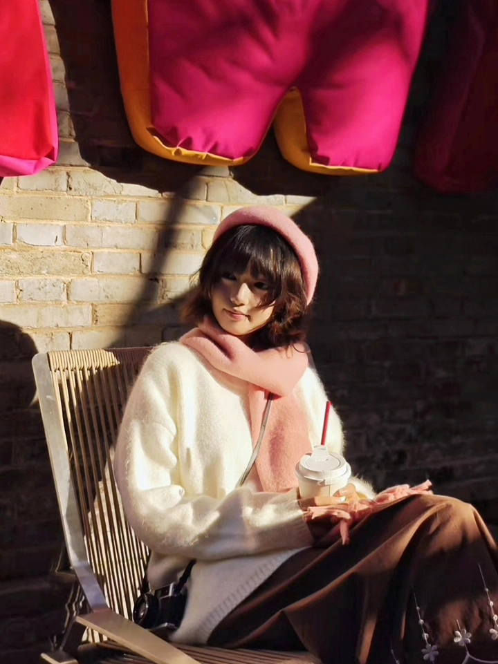 在温暖的阳光里,戴上柔软的粉色贝雷帽,围上同色系围巾,轻裹着奶白色毛衣,手捧一杯热饮。这一刻,时光仿佛都慢了下来,只愿沉浸在这惬意又美好的氛围中,享受独属于自己的小确幸