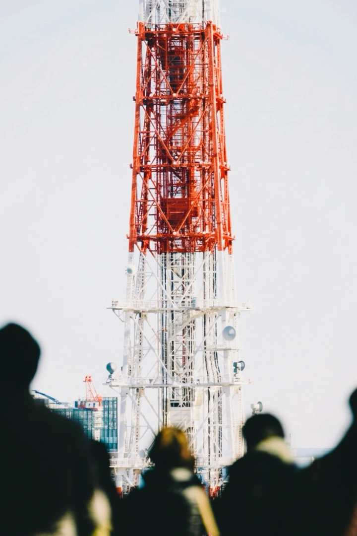 东京塔在白日里明亮清晰,橘红色塔身在蓝天下格外醒目。阳光沿着钢结构滑落,映出利落的线条。脚下街道喧而不乱,一座城市的活力在塔影间流动,干净、轻盈、充满现代的律动。