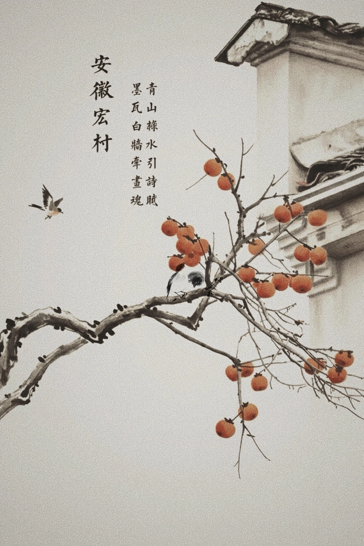 粉墙黛瓦间,秋意悄然落下。一树沉甸的柿子,把宏村的古巷点亮成温暖的橙色。风从老屋檐下吹过,卷起岁月的幽香,也摇动枝头的甜意。在这静如旧梦的村落里,时间变得缓慢,连阳光都带着故乡般的温柔。(当照片遇到国画)