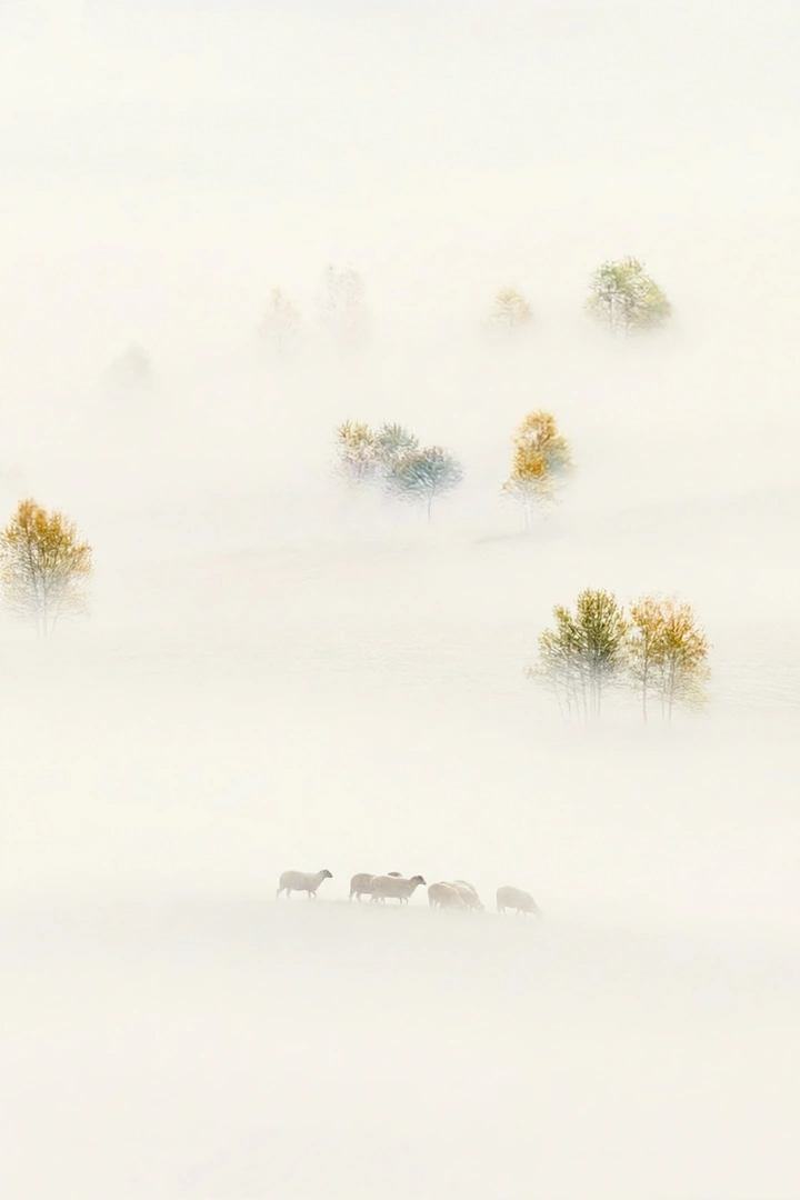 晨雾如轻纱缓缓铺展,悄然笼罩着金秋的群山,层林在薄雾与朝光间交织出斑斓的色彩。牧人策马而行,身影在天地间洒落着自由的节奏;成群的羊儿散落山坡,如跳动的白色音符,让画面愈加宁静悠远。微风拂过,带来草木的清香与秋日特有的温柔。这如诗如画的景色是大自然亲手谱写的一首牧歌,在远离尘嚣的世界里,让人重拾久违的平和与安宁。