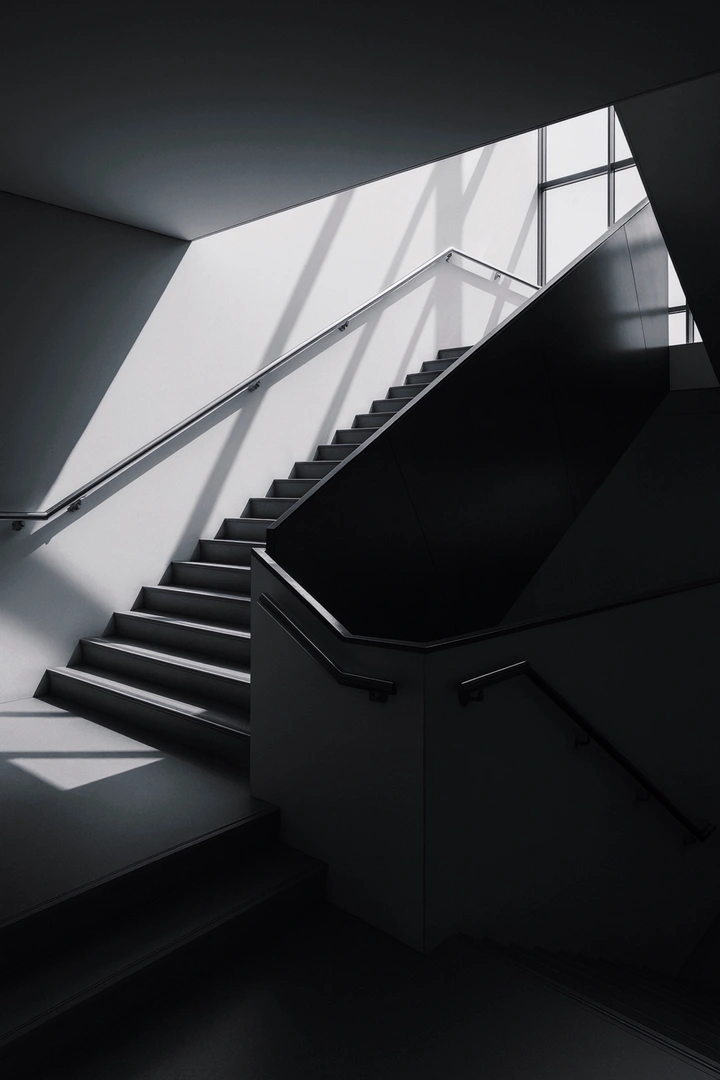 光线如刀锋般切入寂静的空间,沿着墙面与扶手投下精确而冷静的影子。阶梯在明与暗之间缓缓上升,仿佛引领人走向一处未知的境地。静谧的黑白世界里,没有喧器,只有光影的秩序与节奏,在无声中勾勒出建筑最纯粹的力量。 手机拍摄重新构图,修改像素,调光影亮部压暗,暗部提亮窗子的细节找回来出片。