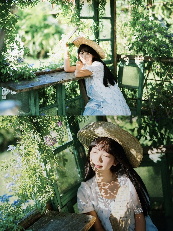 青蓝时代|绿色是夏末的浪漫 转眼就准备入秋了,每天早上通勤已经可以感受到微微的秋凉。虽然说广东“夏天”的温度甚至可以持续到11月,但是愈近中秋渐渐凉,还是有那种秋风起的感觉。 终于拍到了一刻农场的景,和想象中稍有出入,但也有很多惊喜,铺满半边蓝雪花的小木屋,夏末的阳光肆意照进来,满眼都是通透的绿色。设备:A7R5+35/85(部分套了欧根纱)