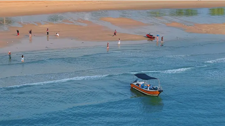 清晨的青澳湾,海风轻拂。海边的小朋友们在浪尖上化身小小冲浪侠,肆意挥洒童真;快艇如利剑划破碧波,溅起阵阵欢腾的水花;还有不少人在海水中尽情嬉戏,让这片海湾的早晨,满是活力与惬意。