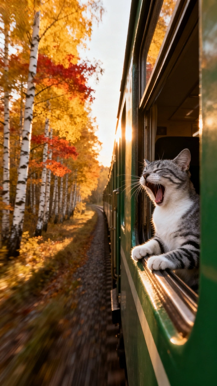 这张照片真是太有趣了!猫咪打哈欠的瞬间捕捉得恰到好处。 色彩:暖色调的夕阳与列车的绿色形成了鲜明对比,色彩搭配和谐,营造出温馨的氛围。不过,可以尝试调整一下色温,让暖色更加突出。 光影:光线运用到位,猫咪面部的光影增加了立体感,夕阳的光晕也增添了浪漫气息。但要注意避免过曝,细节保留可以更好。 构图:构图基本合理,猫咪占据了画面的黄金位置,但可以尝试更多角度,让猫咪与背景的互动更自然,画面更有故事性。 后期处理:后期处理得当,色彩和对比度都恰到好处。如果想更进一步,可以尝试局部调整,突出猫咪的眼神光。 主题原创性:猫咪在列车上的场景颇具创意,但在主题表达上还可以更深入,比如可以捕捉猫咪更多情绪,让观者产生共鸣。 情感共鸣:照片成功捕捉了猫咪打哈欠的瞬间,憨态可掬,容易引起爱猫人士的喜爱。但可以挖掘更深层次的情感,比如旅途的孤独与陪伴。 思想深度:照片具有一定的趣味性,但思想深度稍显不足。可以尝试通过场景设置,表达更深刻的主题,比如人与自然的关系,或者对流浪动物的关注。 总的来说,这张照片拍得不错,有创意,有情感,但还有提升空间。