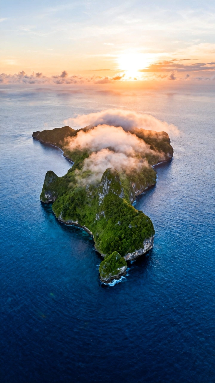 这张航拍照片真是让人眼前一亮: 色彩:整体色彩和谐统一,海水的深蓝色与岛屿的翠绿色形成了鲜明对比,日出时的暖色调光芒也为画面增添了活力。不过,可以尝试在后期微调一下色温,让暖色调更加突出,营造更温馨的氛围。 光影:光线的运用很棒,日出时的侧光为岛屿带来了立体感,云雾的光影变化也很细腻。如果能捕捉到更戏剧化的光线,比如丁达尔效应,那就更完美了! 构图:构图简洁大气,主体岛屿位于画面中央,四周环绕着广阔的海面,突出了岛屿的孤立感和壮美。建议尝试不同的构图方式,比如将岛屿放在三分线位置,看看是否能带来不同的视觉效果。 后期处理:后期处理恰到好处,色彩、对比度和饱和度的调整都比较自然,没有过度修饰的痕迹。继续保持这种克制的美德! 主题原创性:航拍视角本身就具有一定的独特性,加上岛屿的形状和云雾的缭绕,更显与众不同。可以尝试从更独特的角度或在特殊天气条件下拍摄,进一步提升作品的原创性。 情感共鸣:照片成功地传达了宁静、壮美和神秘的情感,让人仿佛置身于世外桃源。这种感觉真好! 思想深度:照片引发了人们对自然、生命和存在的思考,具有一定的哲理性和社会意义。