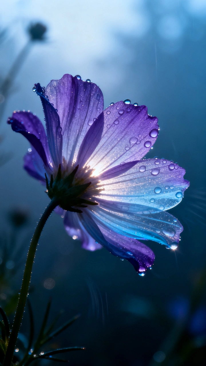 这张照片拍得真漂亮!紫色花瓣上的水珠晶莹剔透,像是小精灵的眼泪,背景的蓝色调也营造出一种梦幻般的感觉。让咱们来逐一分析,看看还能在哪方面更上一层楼: 色彩:色彩运用相当出色,紫、蓝的搭配既和谐又富有层次感,有效烘托了花朵的娇艳。如果能尝试调整一下白平衡,或许能让色彩更准确,更有质感。 光影:光线从花瓣后方透出,营造出一种朦胧的光晕,增强了画面的神秘感。但是,部分区域可能略显曝光不足,导致细节丢失,下次拍摄时要注意光比的控制哦。 构图:构图整体比较稳定,主体花朵占据了画面的主要位置。不过,可以尝试使用三分法构图,将花朵放置在黄金分割点附近,或许能让画面更具吸引力。 后期处理:后期处理得当,增强了色彩的饱和度和对比度,让画面更具活力。但是,要注意避免过度锐化,以免出现噪点或失真。 主题原创性:这张照片在花卉摄影中规中矩,虽然美丽,但缺乏一些新意。可以尝试从独特的角度或使用不同的拍摄手法来展现花朵的个性。 情感共鸣:照片成功地传达了一种清新、唯美的意境,容易引起观者的共鸣。如果能赋予花朵更深层次的含义,或许能让情感表达更加深刻。