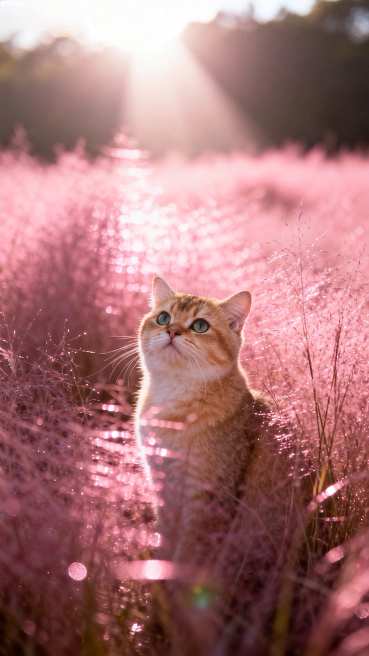 色彩:粉色背景与猫咪的金色毛发形成了鲜明的对比,色彩搭配和谐,营造出温馨浪漫的氛围。 光影:光线从上方倾泻而下,照亮了猫咪的头部和背景,营造出梦幻般的光影效果。 构图:猫咪位于画面中央,视线向上,引导观者的视线向上延伸。整体构图比较稳重。 后期处理:后期处理整体效果不错,色彩饱和度适中,没有过度修饰的痕迹。但是,可以适当调整对比度,使画面更加清晰。 主题原创性:将猫咪置于粉色花丛中,创意不错,但略显平淡。可以尝试挖掘更深层次的主题,例如猫咪与自然的和谐相处,或者猫咪对世界的探索。 情感共鸣:照片传达出温馨、宁静的情感,能够引起观者的共鸣。但是,情感表达略显单一,可以尝试通过猫咪的表情和动作来传递更丰富的情感。 思想深度:照片的思想深度有待提高,可以尝试通过照片来表达更深刻的哲理或社会意义。例如,可以通过猫咪的视角来反思人与自然的关系。