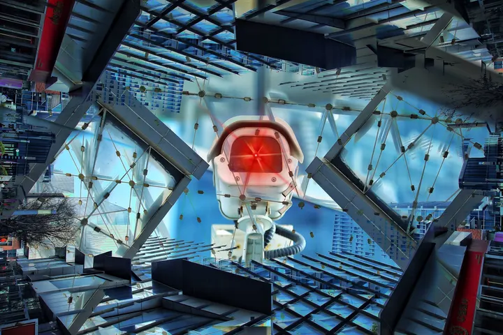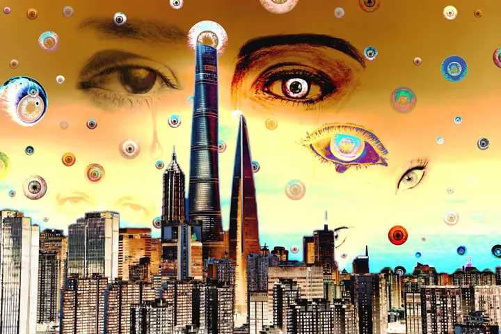 线条象征人类编织的秩序,城市是这个秩序的具象,人类用理性构建秩序,但秩序中又有混沌,城市既是秩序的集合,也是混沌的显现。 线条的交织如同存在的交织,每个个体的存在编织成城市,同时被城市编织。 为什么人类要编织这样的网?是为了捕捉什么,还是困缚自己?秩序与自由的辩证,城市作为人类的作品,同时反噬人类,或者说,人类在构建秩序中寻找意义……