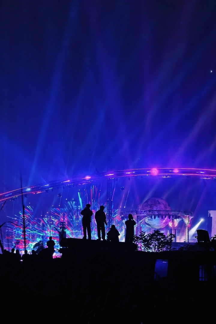 站在乐园演唱会场外,霓虹光束织就梦幻天幕,舞台的热烈隔着距离传来,成了独属的人生记忆!