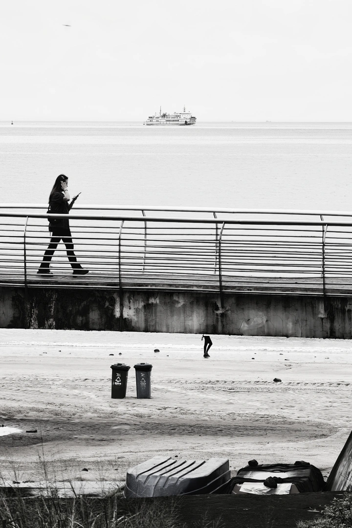 桥上的行人,桥下的腿,躺平的船和唠嗑的垃圾桶在八卦着什么趣闻,这是海边的趣味时刻!