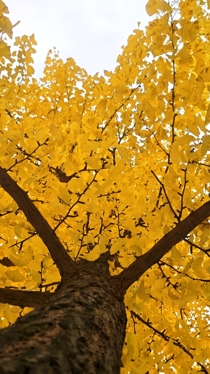 站在金黄璀璨的银杏树下,风都是甜的,抬头望去,叶子飘落在你的脸上,给你一个告别秋天的吻!