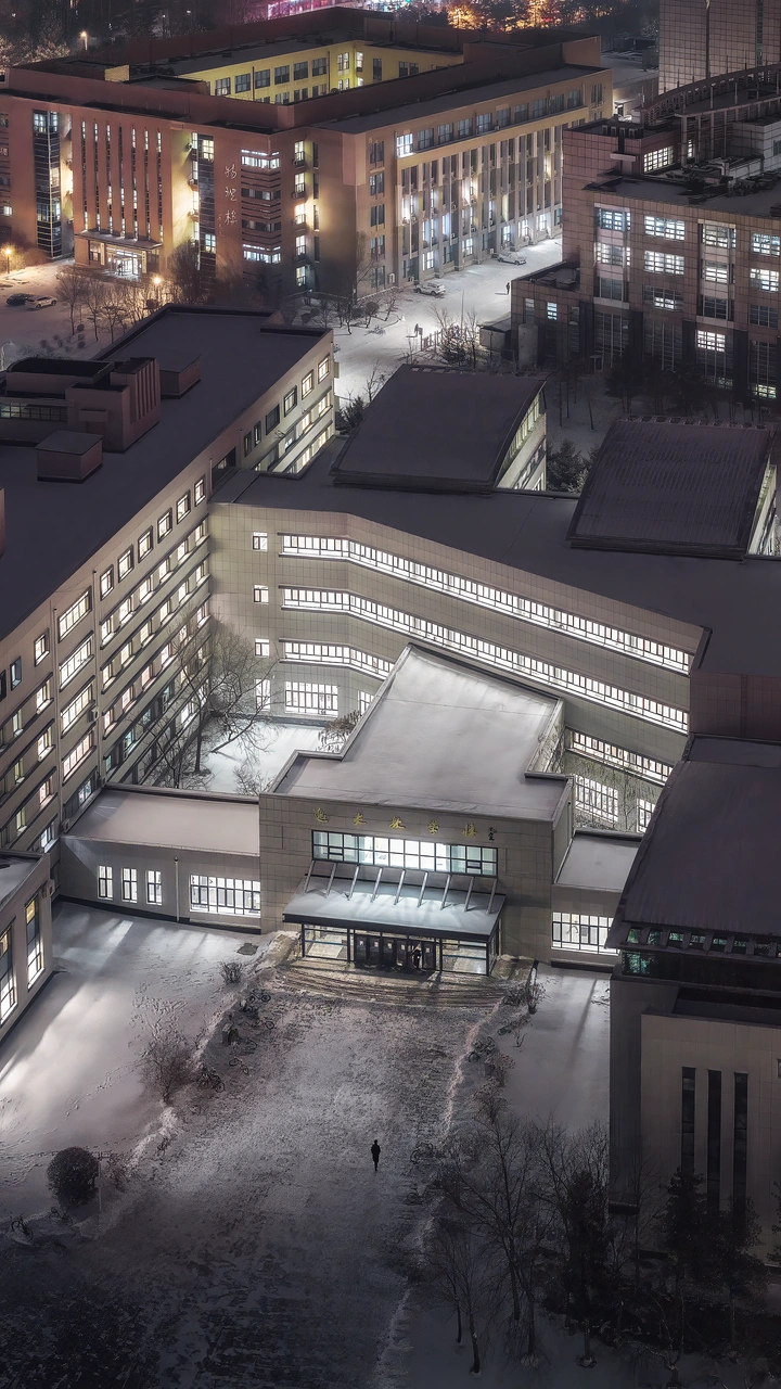 关于冬天的记忆,总是被大雪覆盖的校园占满。 当蓝调时刻降临,教学楼的暖灯与窗外的冰蓝撞个满怀。 我们在雪地里留下的脚印或许会被覆盖, 但这瞬间的静谧与心动,已被快门永久定格。