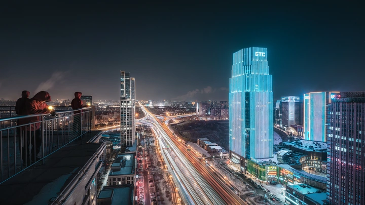 零下20度的气温加上高空的风,真的是“物理攻击”拉满,虽然手已经冻得快按不下快门,但当看到眼前这一幕,瞬间觉得一切都值了✨ GTC环球贸易中心的蓝光划破黑夜,脚下的快速路车水马龙,汇聚成流动的金色光带,仿佛城市的血管在搏动🌃 远处是万家灯火,近处是属于我的高空寂静,这种“眼睛上天堂,身体下地狱”的感觉,恐怕只有爬楼党才能深刻体会📸