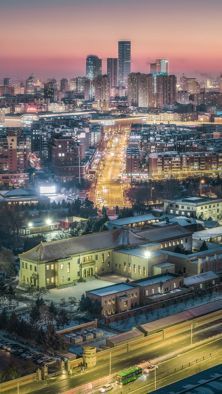 零下二十度的长春,伪满皇宫的青瓦积着薄雪,远处的摩天楼群正亮起灯火。从伪满时期的宫廷到如今的CBD,这条纵向的城市脉络里,藏着长春的百年变迁。用镜头定格这一刻,让历史的余温与现代的烟火在同一张底片里相遇。