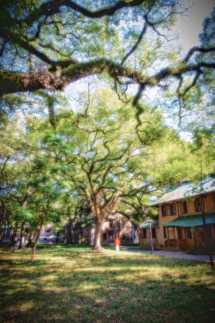晴日里,百年老樟舒展遒劲枝桠,将浓荫与碎金般的日光一同编织在红砖老屋的檐角。深绿叶片滤去盛夏燥热,只留温柔光斑在草地上流淌。风穿过树冠时,光影便在复古砖墙上轻轻摇晃,像岁月写下的诗行。 这是被时光偏爱的角落:老樟树的年轮藏着过往故事,红瓦砖房的窗棂仍映着当年书声。阳光穿透层层绿叶,在地面织就流动光斑,仿佛每缕光影都在低语:不必追赶时间,只需静立樟荫下,让风携草木清香漫过肩头,让斑驳日光温柔拥抱周身。 绿穹之下,旧建筑与新生命共生,浓荫与晴光相映。每一次呼吸都满是岁月沉淀的安宁,仿佛伸手就能触到时光的温度。