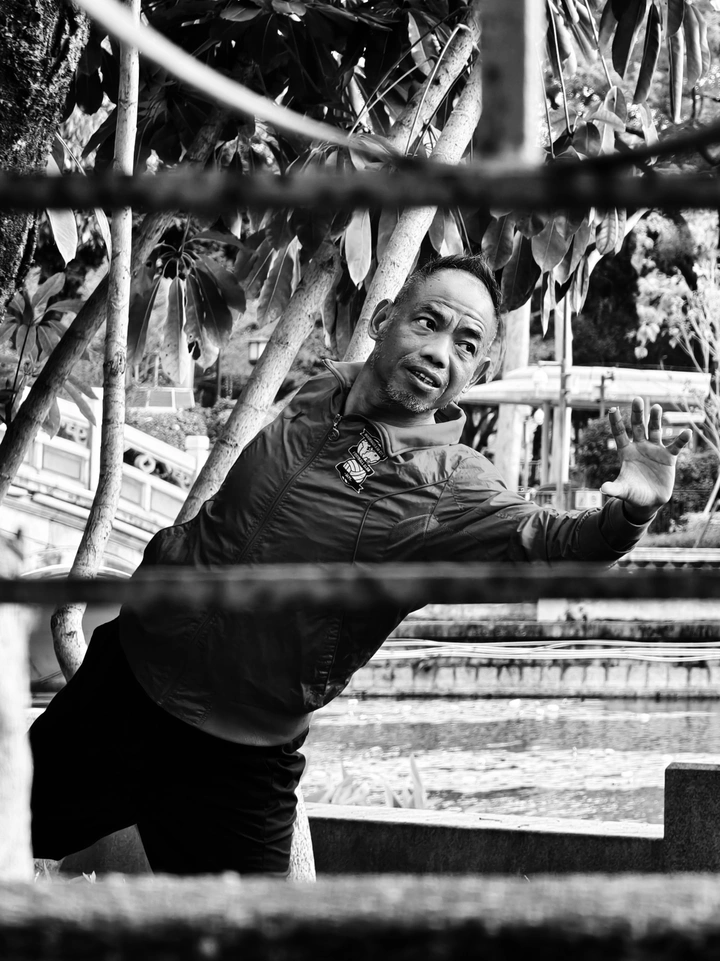 冬日晨雾还没散尽,他的身影已在林间舒展。 锈迹的铁栏框住一方天地,轻薄的夹克尽显身材。 手臂舒展如翼,目光笃定,仿佛要把晨光都攥进掌心。 湖水泛着碎光,树影轻摇, 他在自己的节奏里,与这座城市的清晨,悄悄对练。