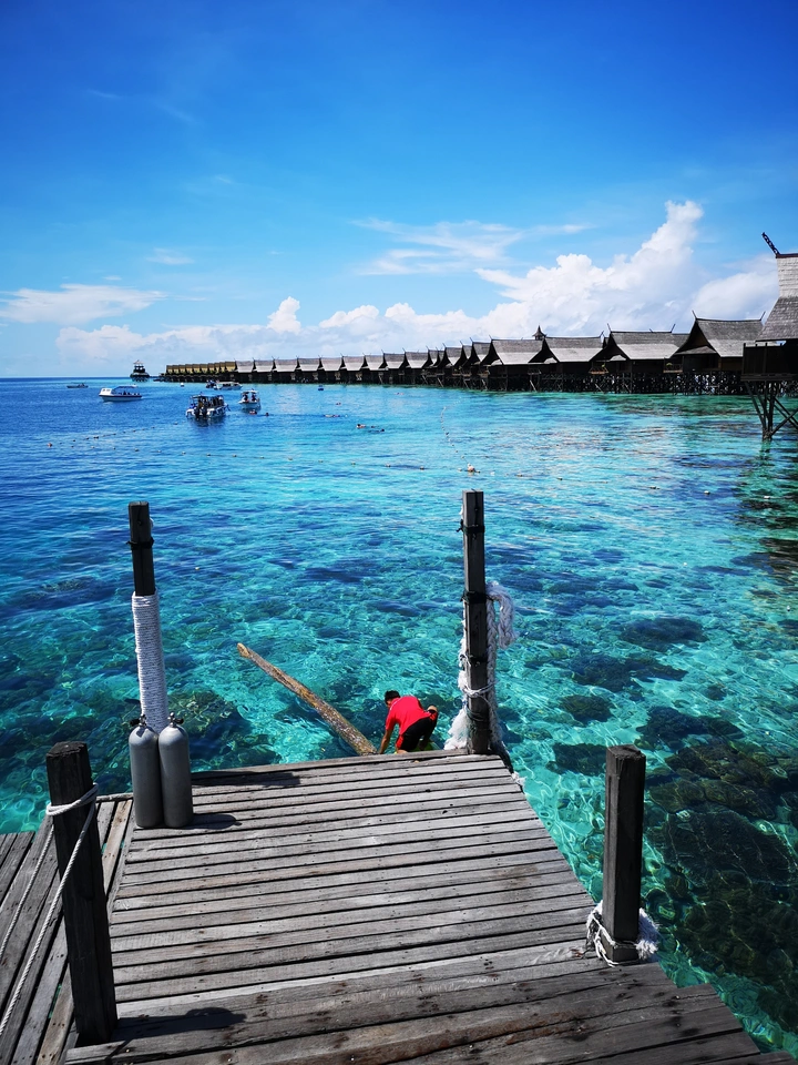 海里沙洲上的水屋,清澈的海水,白色的沙滩,灵动的海龟,让人流连忘返。