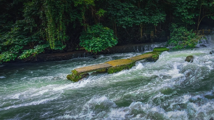 两岸的绿是铺开的信,湍急的流水是泼洒的墨汁,残桥则是笔锋落下的痕迹。站在这天然的"诗页"前,仿佛能看见时光在这里流淌的轨迹﹣﹣残桥承载过的足迹,流水冲刷不掉的过往,都藏在这湍流与绿意里。