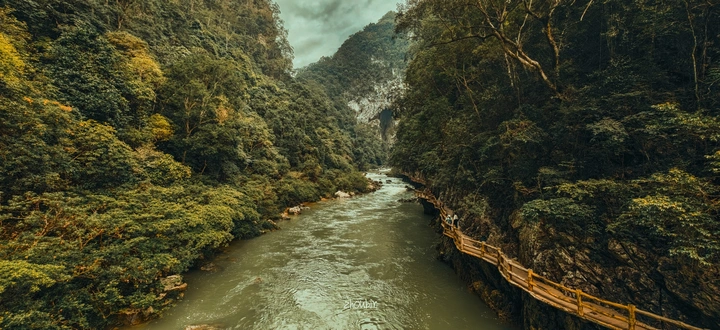 闯入这片带着旧电影滤镜的山水,河流泛着岁月的波纹,青山裹着复古的绿装,木栈道像时光回廊。在荔波大七孔,把自己放进怀旧的画框,与山水共赴一场复古漫游。