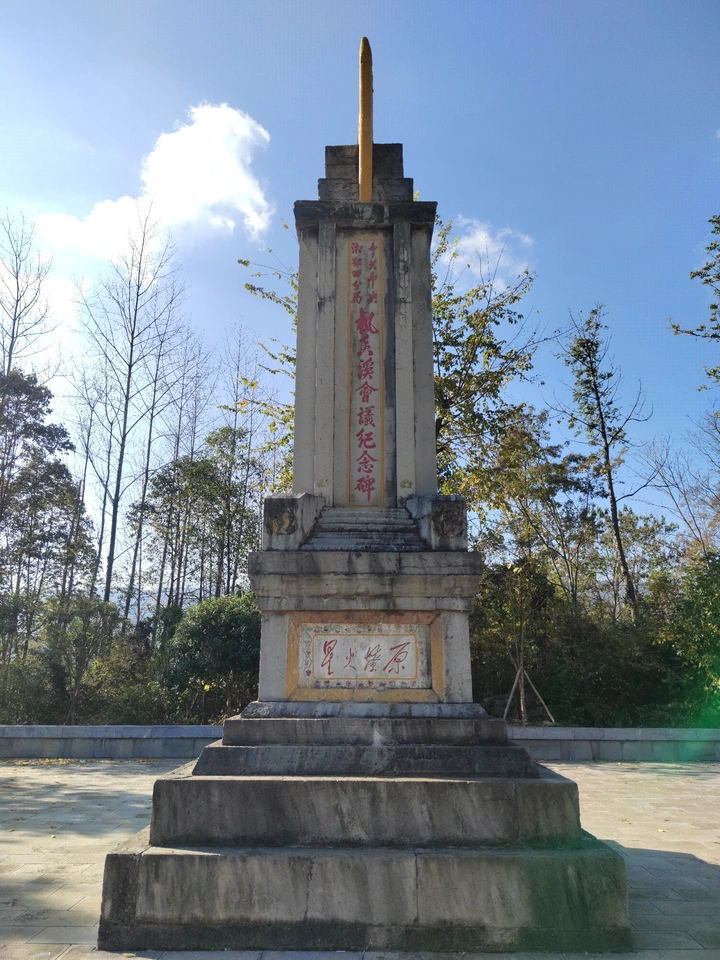 这是枫香溪会议纪念碑,位于贵州省德江县枫香溪镇,是纪念1934年“枫香溪会议”的红色纪念建筑。以下是其核心背景与意义:建成于1980年,为石质结构,长/宽3.3米、高10米,主碑顶有浮雕;2006年被列为全国重点文物保护单位,属于枫香溪会议会址文物系列的一部分。1934年6月19日,由红三军(贺龙、关向应等率领)在枫香溪召开;建立黔东革命根据地、恢复红三军党团组织与政治机关、停止“左”倾肃反;是红三军从挫折走向转折的关键会议,为红二、六军团会师奠定基础,也为中央红军长征提供了策应。- 是贵州重要的爱国主义教育基地,承载着“敢于革命”的黔东精神;与枫香溪会议会址、红三军医院旧址等28处革命旧址共同构成红色文化集群,现为3A级红色旅游景区。