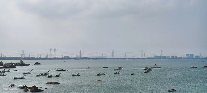 浅青色的海面被微风揉出细碎的波纹,像一块被阳光暖透的绿玉。近岸的渔船三三两两,在浪里自在地晃着,船舷上的红漆在灰蒙天色里格外鲜亮。 它们不像在等待出海,更像一群慵懒的旅人,正枕着潮汐打盹。偶尔有白鹭掠过水面,翅膀带起的涟漪,会轻轻拍打着黑色礁石,发出细碎的声响。