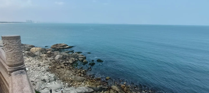 站在礁石上,咸湿的海风裹着阳光扑面而来,把所有烦恼都吹得轻飘飘的。远处的海面是渐变的蓝,从近处的澄澈一直晕染到天边的薄雾里,几座高楼在雾中若隐若现,像海市蜃楼。 偶尔有白色的水鸟掠过水面,翅膀点起细碎的涟漪。我找了块平坦的石头坐下,看着浪涛一波波涌来,撞在礁石上溅起雪白的泡沫,什么都不用想,光是发呆就很幸福。